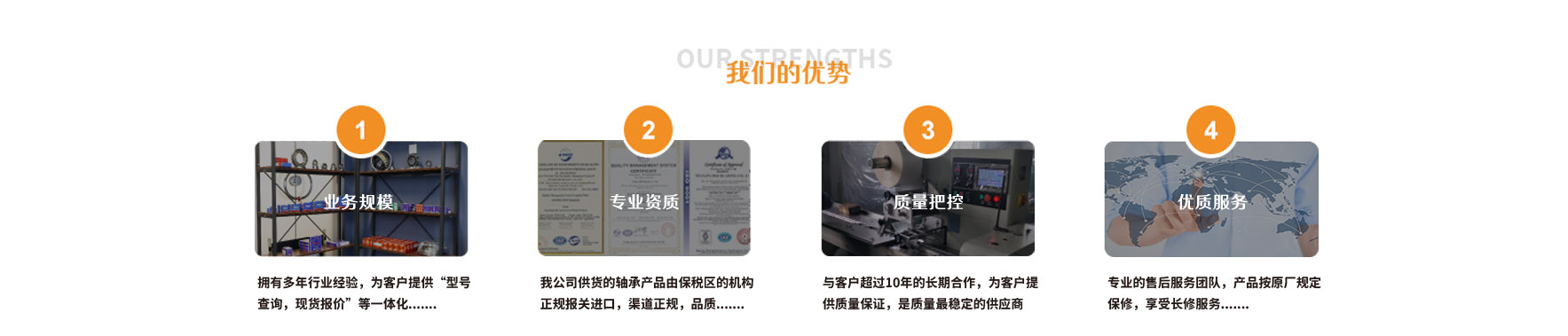天津鼎晟瑞軸承有限公司是一家以進口軸承銷售為主的貿易公司,主要產品有: 瑞典SKF軸承、德國FAG軸承、INA軸承、日本NSK軸承、NTN軸承、IKO軸承、KOYO軸承、美國TIMKEN軸承等。國內品牌有:瓦房店ZWZ軸承、哈爾濱HRB軸承、洛陽LYC軸承等國內大廠軸承。
